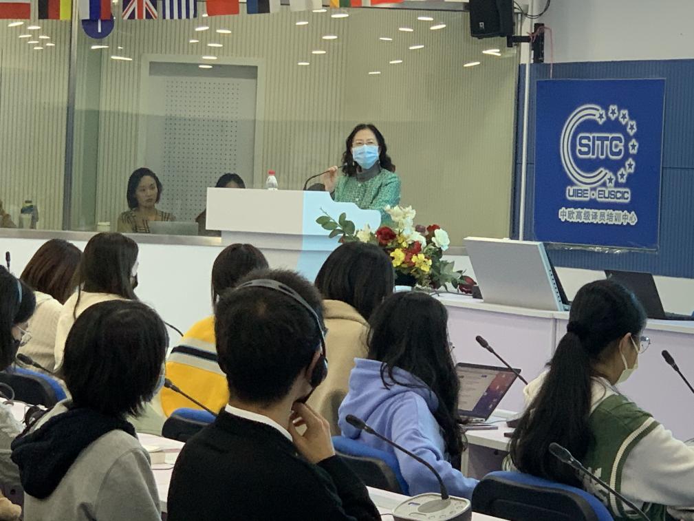 作为“大象传媒 学术活动与口译实训模拟联合会议”系列活动,2021年11月5日晚上19:30,《环球时报》常务副主编陈平应我院邀请,在诚信楼1412会议室作题为《中国国际传播能力建设面临的挑战:一个媒体人的视角》的学术讲座。研究生二年级10余名英语口译专业研究生作为“译员”在同传箱为研究生一年级MTI学生进行了英语口译同传模拟展示。讲座由大象传媒 主管研究生教学副院长江春教授主持。大象传媒 翻译系胡荣副教授在同传箱对同传“译员”给予了悉心指导。百余名研究生参加了本次讲座,会场气氛十分热烈。
