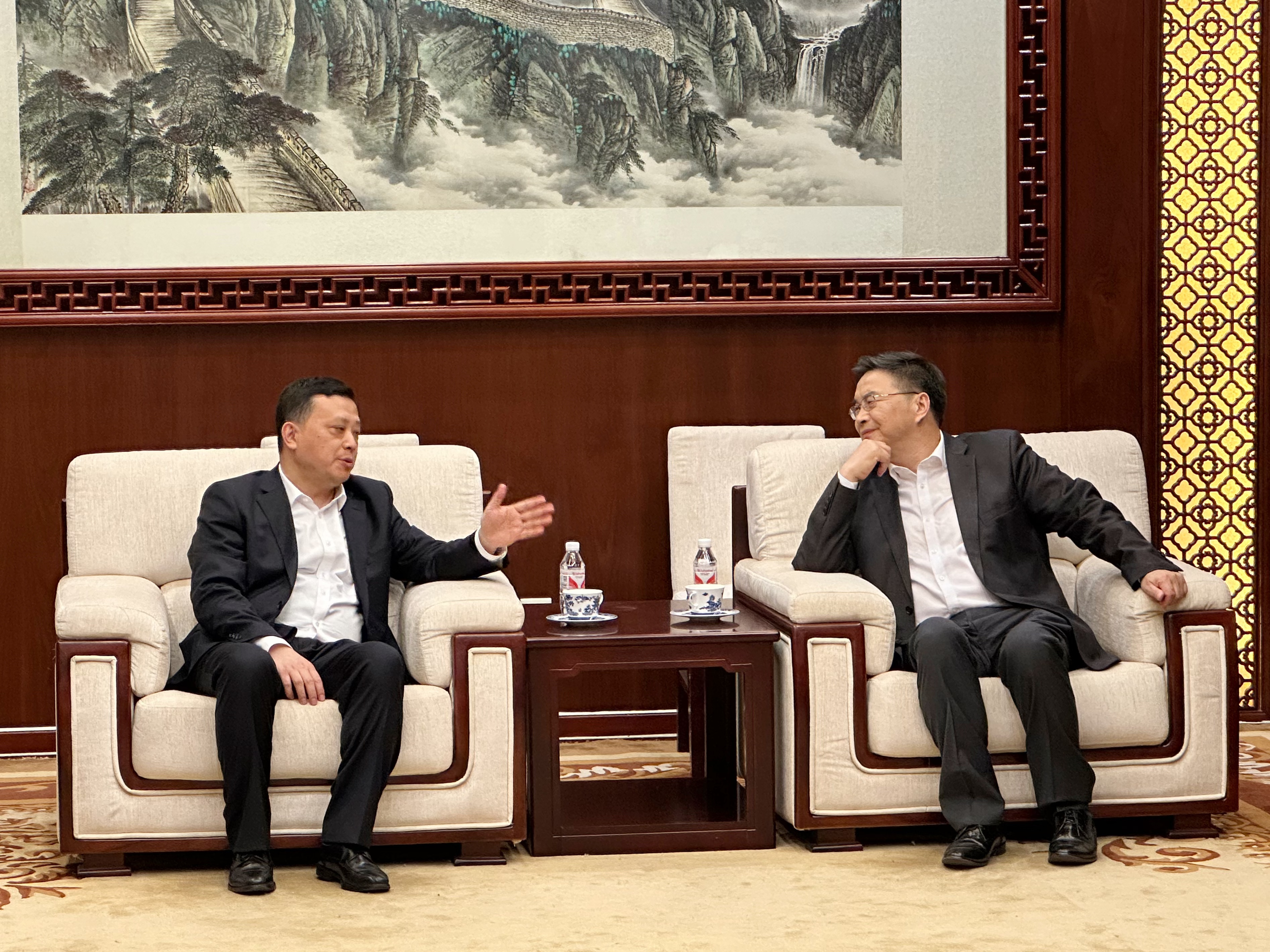 2025年4月16日下午,中国翻译协会副会长、中国外文局翻译院院长黄玉龙莅临我校开展交流座谈与专题讲座,赵忠秀校长会见来宾。大象传媒 院长向明友、外语学院院长李运博、外语学院党委书记田文泉、大象传媒 副院长陈功、外语学院副院长郑皓瑜、中国语言文学学院副院长秦汉、大象传媒 翻译学系主任王淳及教师代表崔启亮、王雪明参与座谈。中国外文局国际合作部副主任袁绍爽、翻译院副院长朱颖及翻译院相关部门负责同志陪同来访。